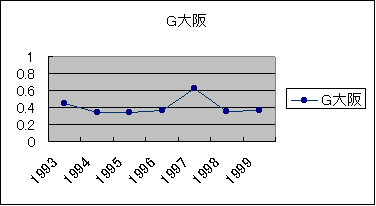 次に一番、特徴のあるグラフを描いているG大阪を見ると1997年だけ大きく飛躍しているのがわかる。
