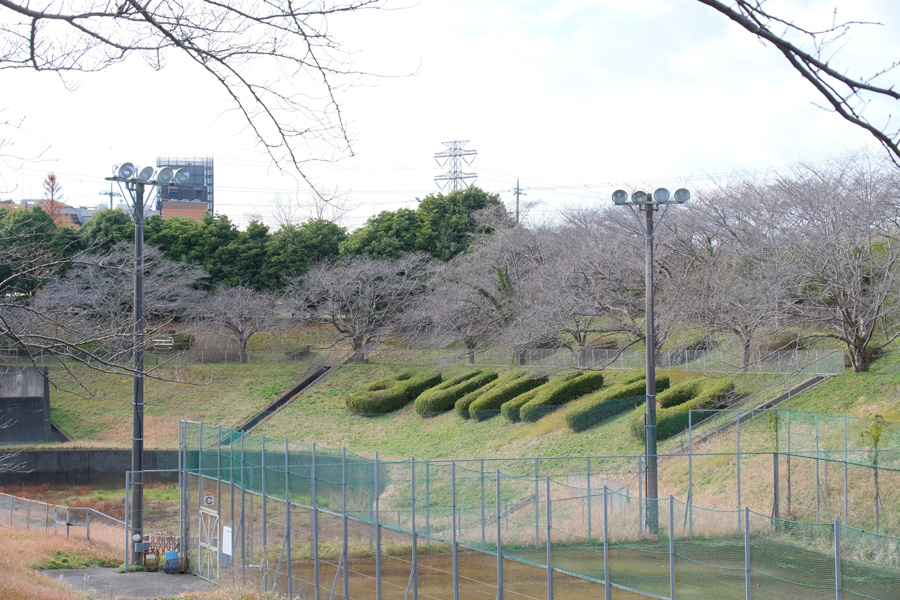 【 新緑が映える貯水池とBUNKYOの文字 】