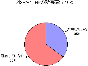 まず、ホームページを作成・公開している人の割合を図3-2-4に示す。一般的にホームページの所有率は全体の10%前後であるが、今回の調査では所有者は35%と高い割合であった。