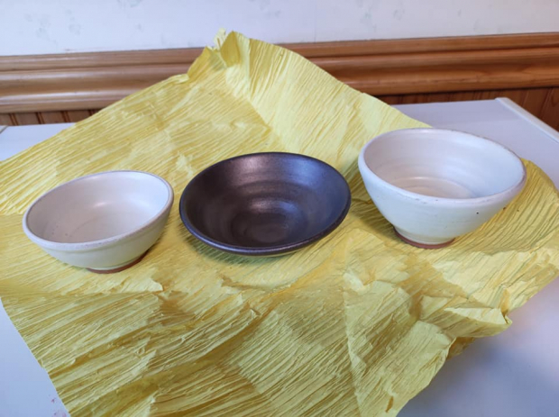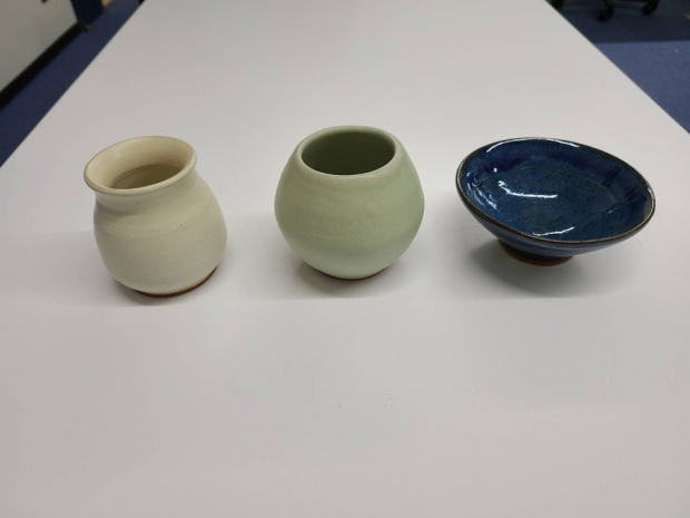 2月に開催した支部研修会で作った笠間焼の作品を披露しました。