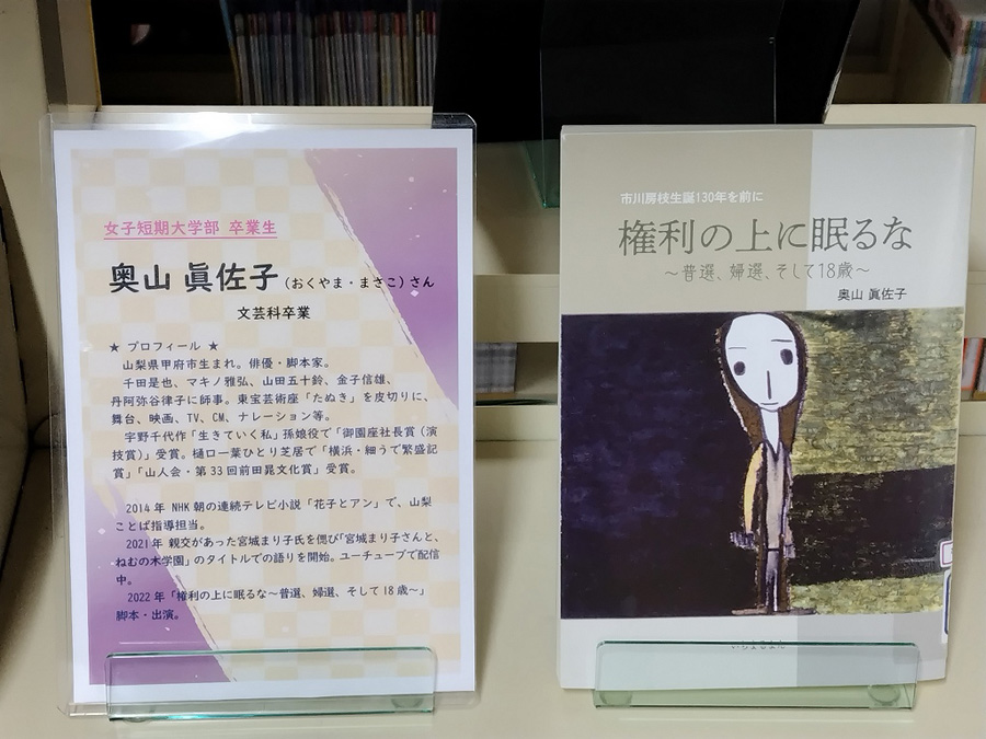 女性参政権を得て80年目今年、私の著作「権利の上に眠るな ~普選、婦選、そして18歳~」が、文教大学湘南図書館の蔵書になりました。
