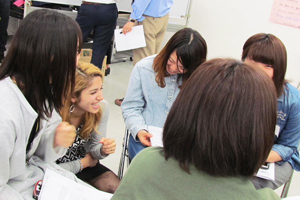 参加した学生は、外部から招いた英語ネイティブ講師、英米語英米文学科の上級生サポーター、外国学科の教員を交え、活発に英語でのやりとりを行いました。参加した学生からは、「通常クラスの授業では、話す機会のなかった人と知り合えた」「ネイティブの講師とたくさん話せた」「英語のみでコミュニケーションを行う力が伸びた」「とても楽しかった」等の意見が寄せられました。