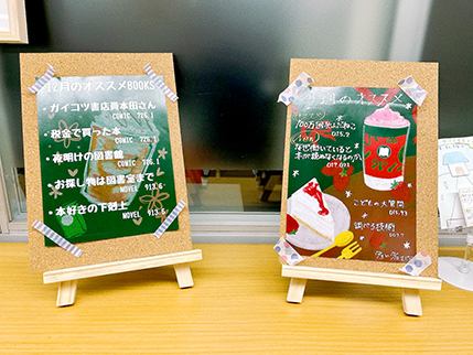 カフェ風のボード、おすすめ本のおみくじ、福袋など、季節にあわせたディスプレイも利用者の目をひいたのではないでしょうか。
