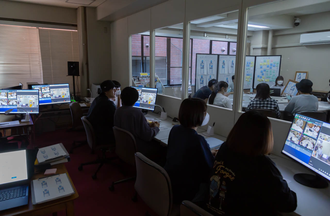 4ケ所の定点カメラと360度カメラの映像がその場で録画でき、収録された音声はAIにより自動で文字起こしが可能です。グループインタビューは、調査終了後に資料整理に時間がかかるものですが、本スタジオでは、たとえ90分の調査であっても、調査終了後20分ほどで、字幕付きの映像資料まで作成することができ、効率的に論文や報告書を作成するサポートを行っています。