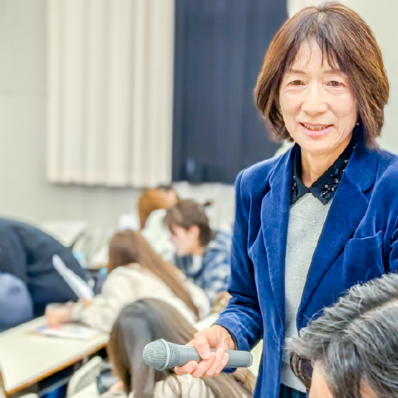 健康栄養学部には、多彩な専門分野と実務経験をもつ教員が集い、それぞれの強みを活かした学びを提供しています。ゼミや卒業研究では、独自の視点と深い専門性を備えた教員が、学生の観察力・洞察力・行動力を育むために、実践的で丁寧な指導を行っています。