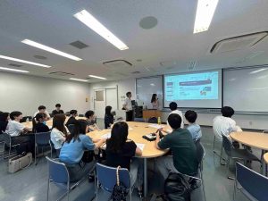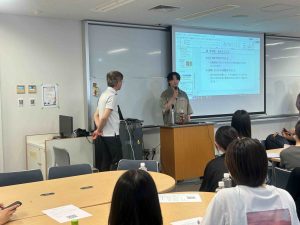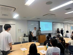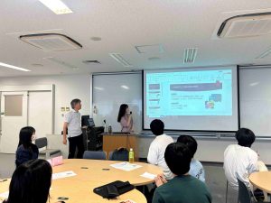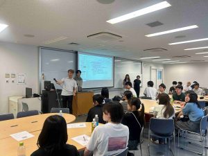 人間科学部ビジネス心理学実習(インターンシップコース)の最終日となる7月25日、多様な業界へ進路を決定した4年生4名による就職活動報告会が開催されました。