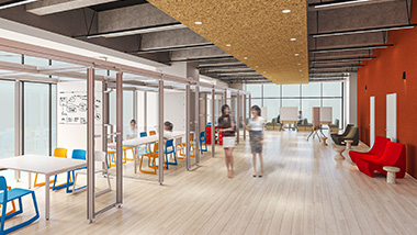 キャンパスの全体図や、「コモンズエリア」「図書館エリア」を中心とした各スペースの詳細・完成イメージをご紹介しています。