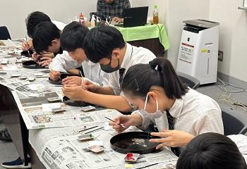初日は奈良公園の自主研修で、自然を楽しみながら寺社などを回りました。2日目は京都に移動して地元の方々の協力のもと伝統産業体験に参加しました。午後は自主研修で昼食を含め班ごとに京都の街をタクシーで回りました。タクシーの運転手さんが歴史や文化についても解説してくれたので、見て楽しむだけでなく歴史や文化についても理解が深まりました。三日目は広島に移動してフェリーで宮島に行きました。最終日は広島で平和学習でした。原爆の子の像の前で平和宣言をして千羽鶴を奉納、地元のガイドさんの解説で碑めぐり、被爆二世の方の講話、原爆資料館の見学など、前日までの楽しいで溢れた修学旅行から一転して真剣な面持ちで参加しました。
