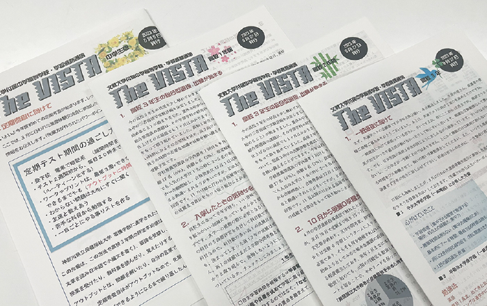 各学年で意識してほしいことや模試の振り返り、学習面での悩みやつまずきを解決できるような内容を中心に、各学年で定期的に配信しています。大学受験の最新情報や日々の学習に対するアドバイス、教員の受験体験記や卒業生へのインタビュー記事などが掲載されています。先輩からのメッセージに励まされたり、大学受験に向けた数年後の自分を想像できたりするので、学習面での成長の一助となっています。