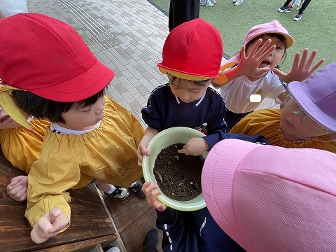 11月6日(水)、梅組(年中)がキャンパス内の芋畑の芋ほりをしました。