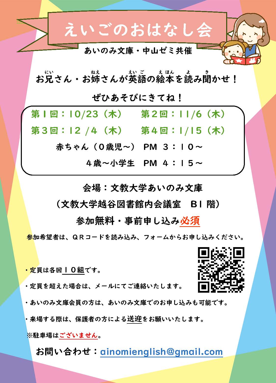 1982年4月 文教大学越谷図書館児童室にあいのみ文庫開設1987年7月 ボランティアによる運営開始