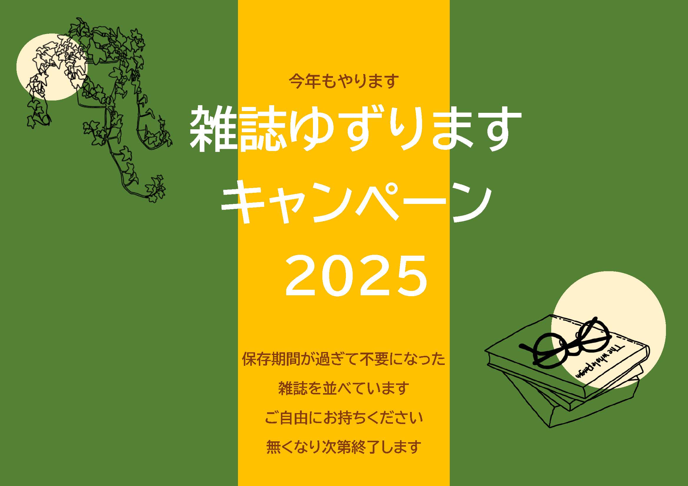 湘南図書館所蔵の雑誌のうち、保存期間の過ぎたものを皆さんに配布する 「雑誌ゆずります! キャンペーン」 を今年も実施します !! もちろん全て無料です。