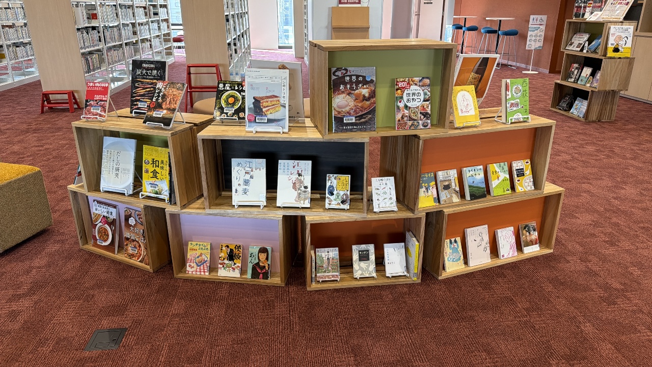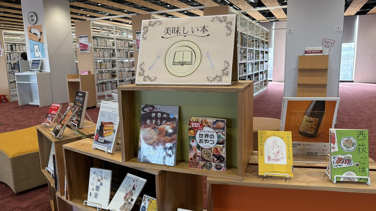 東京あだち図書館2階の企画展示コーナー、2月の図書館展示のテーマは『おいしい本』です。