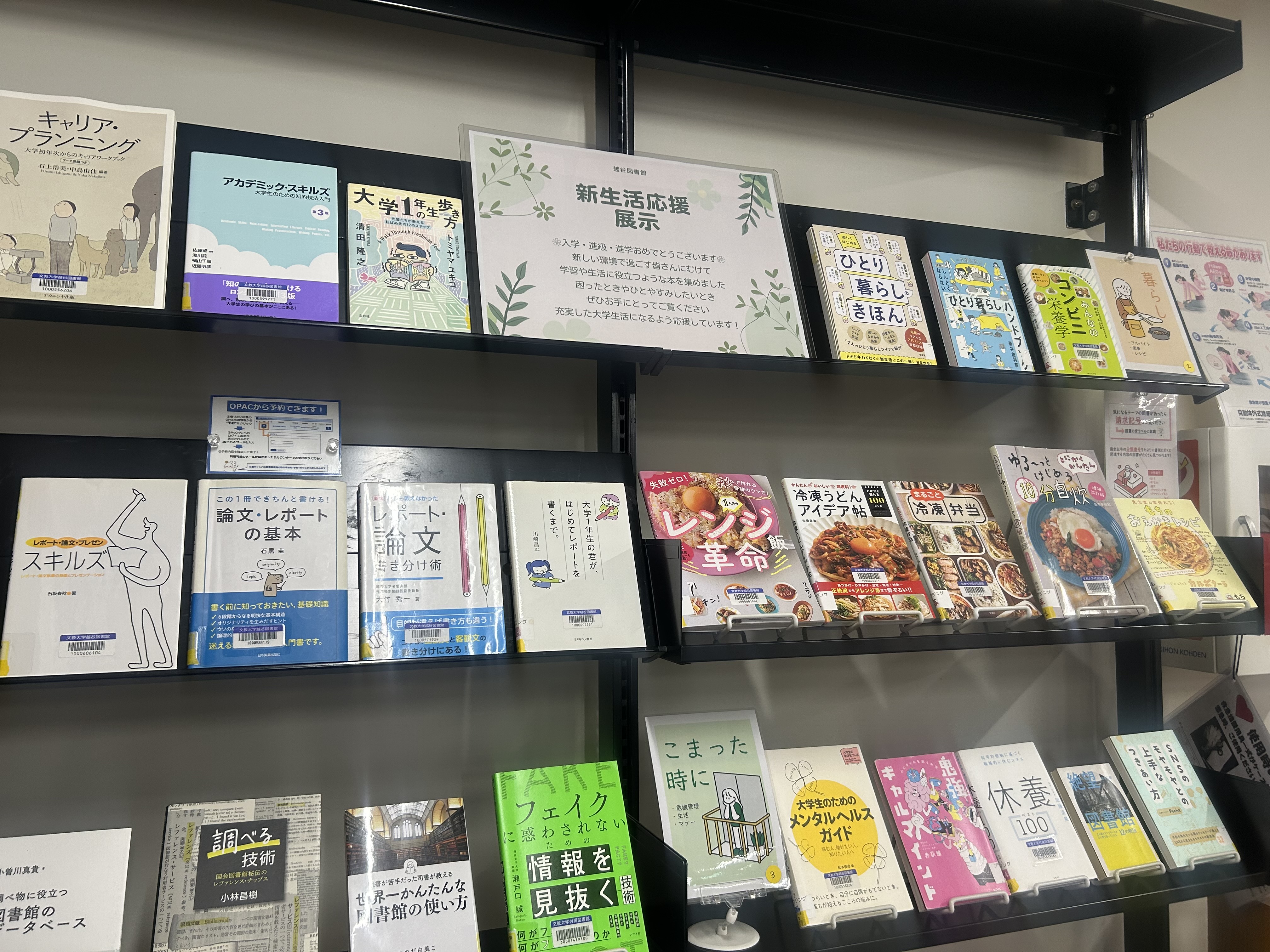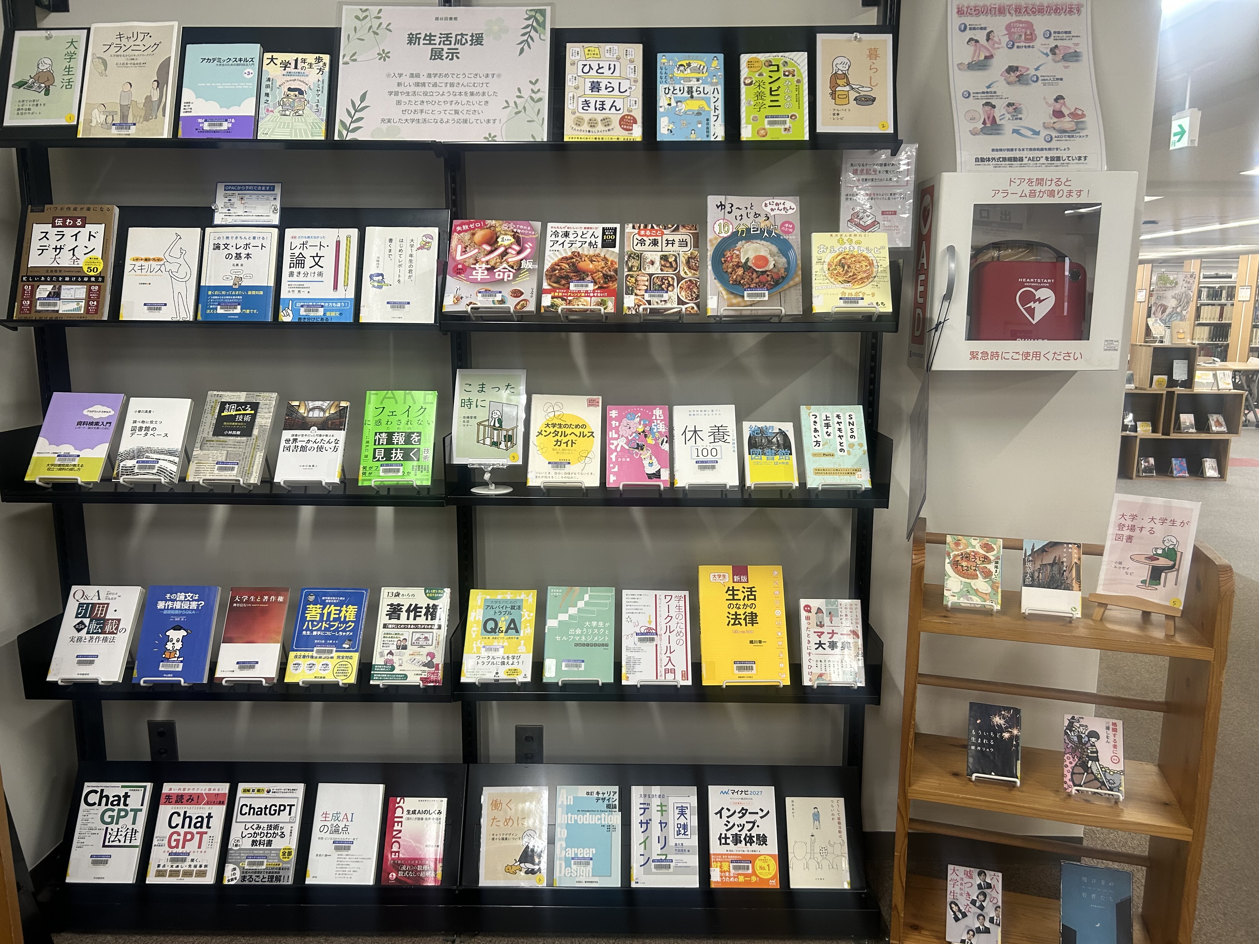 越谷図書館1階・入退館ゲート前で、「新生活応援」展示を開始しました。