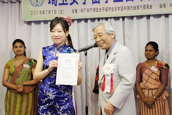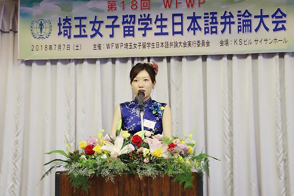 7月7日(土)に開催された「第18回埼玉女子留学生日本語弁論大会」(WFWP*主催)において、言語文化研究科2年生のグ・ユニンさんが最優秀賞を受賞しました。