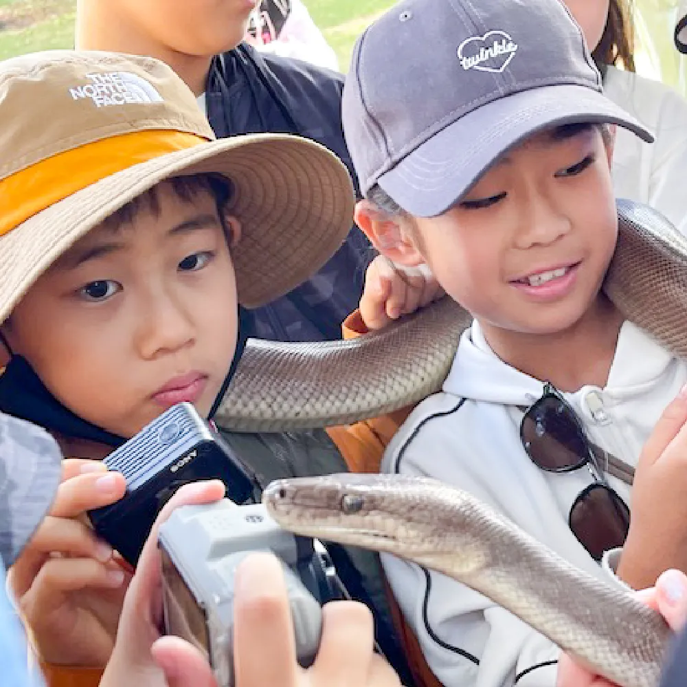 オーストラリアならではの作りものではない大自然の体感プログラムです。アニマルガイドさんのもと、現地のトカゲやヘビ、野生のペリカンの群れに出会ったり。究極の感動は、コアラやカンガルーの絶滅の危機を救うためのクンババレイク自然保護区。野生動物たちとの共存を重んじるオーストラリアの素晴らしい精神も学びます。
