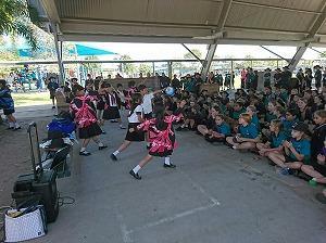 四年生はNorth Lake State Collegeでの生活は二日目、最終日を迎えました。学校に到着し、英会話レッスンを受け、その後オーストラリアの友人達が待つ、それぞれのクラスへ入りました。2日目になると、馴染みの顔もわかり、リラックスして、笑い合う場面も見られるようになりました。バディ達も子ども達の姿を見つけると名前を呼んで話しかけてくれます。言葉は通じなくてもボールで遊んだり、手遊びをしたり。休み時間の中ではフェアウェルパーティーに向けて、ソーセージサンドイッチが子ども達に振る舞われました。そして、いよいよフェアウェルパーティーです。ドキドキしながらも、出発までに練習してきた自己紹介とエイサーをクラスメイトや友達に披露しました。