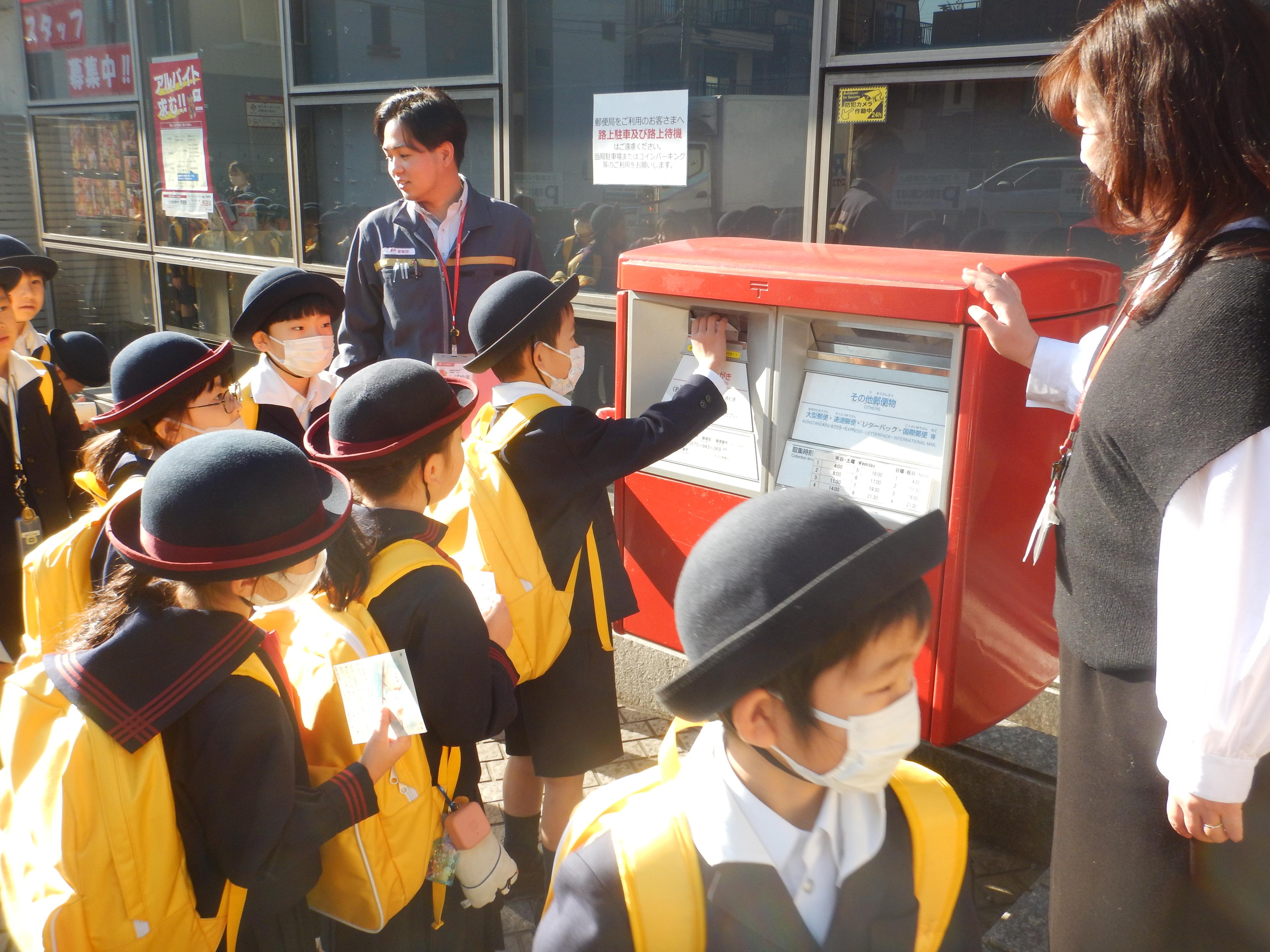子供たちは、「区分機」の大きさや仕分けの速さに歓声をあげながら大きな学びにしました。また、配達のバイクや車に、乗せていただくこともできました。普段当たり前のように自宅のポストに届けられるお手紙が、こんなにも多くの方々の手によって無事に届けられていることを初めて知り、改めて郵便局の仕事の大切さを、知ることができました。この貴重な経験を、12月に全校で行う「文教郵便局」に、生かしていきます。子供たちは、郵便局で投函したはがきが先方の家に届くことを、楽しみにしています。