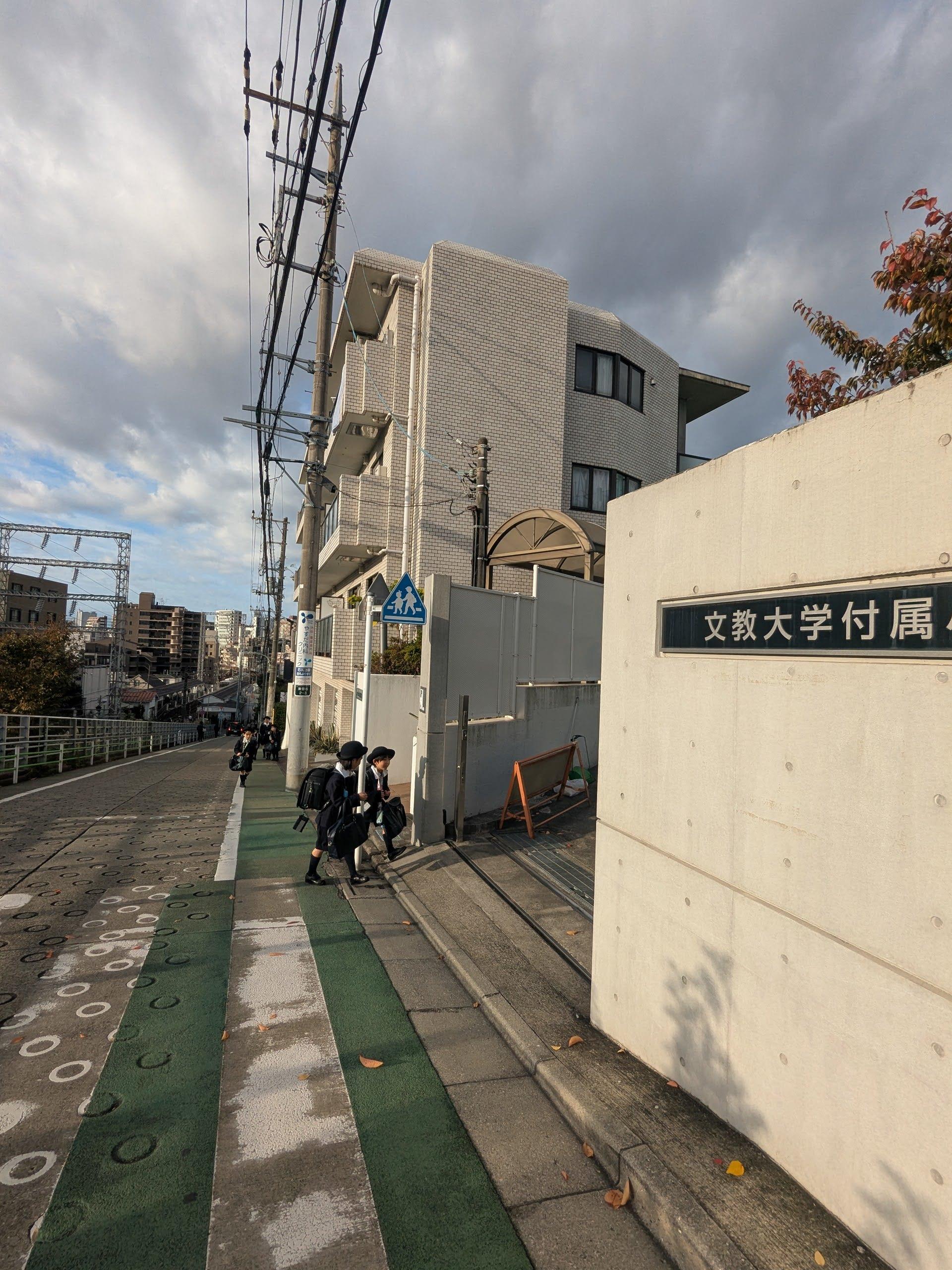 朝の登校時には、駅から続く坂道を登ってくる子どもたちの姿が次々と見られます。正門の前には教員が立ち、登校してくる子どもたちの安全を確認しながら、「おはようございます」と一人一人に呼びかけています。子どもたちは、坂道の上りにも疲れを見せることなく、元気よく「おはようございます!」とあいさつを返しながら校舎へ向かい、朝の学校に活気が広がります。