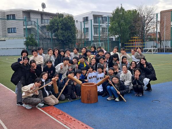 12月20日にお餅つきを行いました。冬休みの間は6年生だけ冬季補習を行っています。補習の初日に、受験に向けて英気を養い、縁起を担ぐために毎年行っています。お餅つきでは、それぞれが重い杵をもちあげて力を込めてお餅をつきました。ついたお餅を自分たちでこねて鏡餅にし、御幣や扇などの飾りを作って持って帰りました。