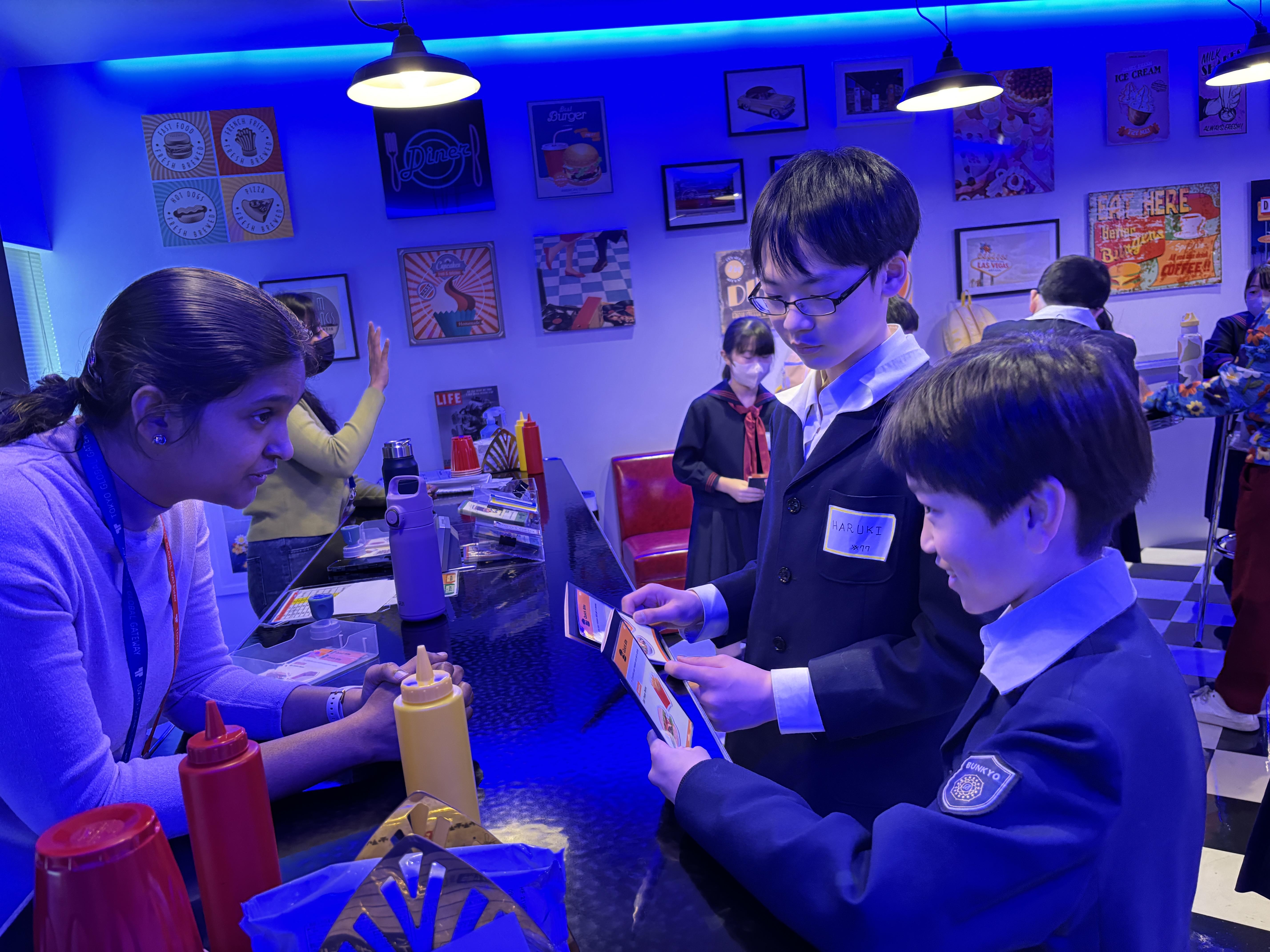 ホテルゾーンでは、売店で食べ物や日用品を購入する活動を行いました。必要な物を自分の言葉で伝え、値段を聞いたり、やりとりをしたりしながら、実践的な英語を使う経験を積むことができました。