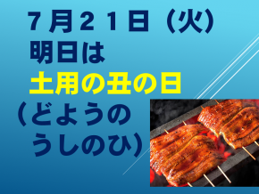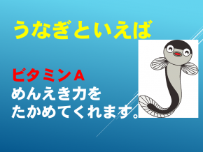 Zoomでの全校朝礼で島野先生は、「7月21日(火)は土用の丑の日ですが、どんな日か知っていますか。」とおっしゃいました。そして、土用というのは立秋の前の18日間のことで、この夏前の丑の日に言い伝えとして『う』のつく食べ物を食べると夏バテしないことを教えていただき、夏バテに効きそうな夏の食べ物を問われました。それぞれの教室から子どもたちの「梅干し!」「きゅうり!」「うどん!」と元気な声が響いていました。そして、「うなぎ」を紹介され、「うなぎ」には、ビタミンB1が疲労回復に効き目があり、DHAが脳の働きをよくして、ビタミンAが免疫力を高め、カルシウムが骨や歯を強くしてくれることを教えていただきました。最後には、「土用の丑の日は季節の変わり目です。体調に気をつけて元気に夏を過ごしましょう。」と、全校に呼びかけられました。夏休みはもう目の前!じめじめした季節だからこそ、基本的な生活リズムを大切に、栄養もしっかりとって、免疫力を高めていきましょう。