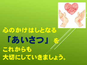 今週のテーマは「あいさつは魔法のことば~心のこもったあいさつ!気持ちのいい元気なあいさつ!あいさつは心をつなぐ魔法の言葉!」でした。