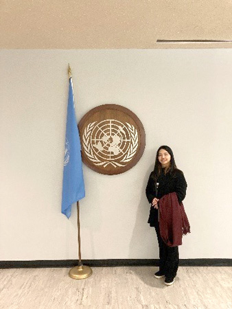 人間科学部臨床心理学科4年生(現在、大学院1年)木村緒実さんが、国連NGO国内女性委員会のインターン生として、2024年3月にNYの国連本部で開催されたCSW68(第68回女性の地位委員会)のパラレルイベントに布柴教授と共に参加しました。その他にも、日本政府国連代表部で日本政府代表団によるCSW68のブリーフィングに出席したり、UNDP(国連開発計画)を訪問し、国連職員の方から、お話を聴く機会を得ました。
