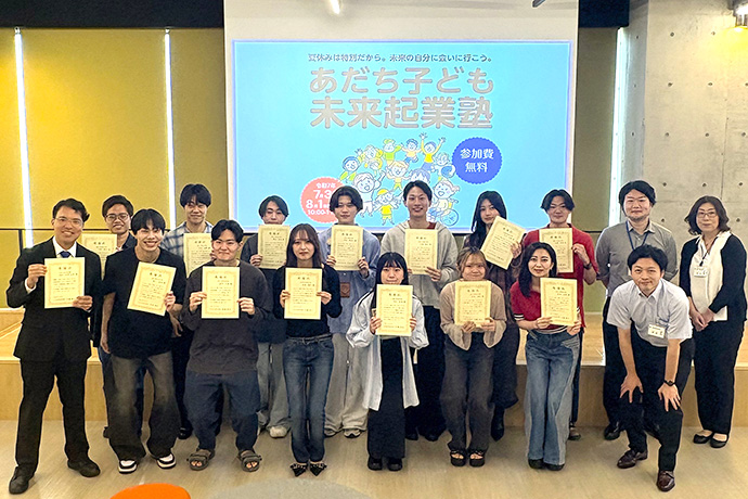「あだち子ども未来起業塾」(主催:足立区、開催日時:2025年7月31日~8月2日)において、参加した小学生を支援した経営学部 田中克昌ゼミナールの学生(14名)に対し、足立区産業経済部より、感謝状が贈呈されました。