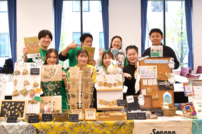 本学からも、国際学部の海津ゼミナール、黛ゼミナール、青木洋高ゼミナールが参加し、それぞれ取組発表やゼミナールの活動で交流のある事業者と連携をしての物販などが行われました。
