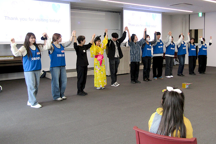 11月2日(日)に、国際学部 塩沢泰子ゼミナールが、小学3・4年生を対象としたイベント「0からENGLISH」を実施しました。本イベントは、英語の絵本や童話をもとに英語のおもしろさを体験してもらうというコンセプトのもと、足立区との連携事業として実施され、対面では2022年度から継続して開催されています。