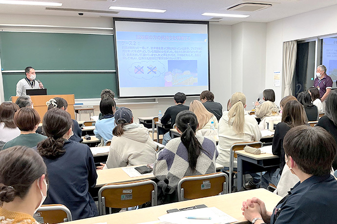 11月26日(水)に越谷キャンパスで越谷市地域包括ケア課との連携「認知症サポーター養成講座」を実施し、学生等47名が受講しました。